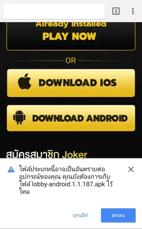 2. กดปุ่ม "ตกลง" เพื่อเริ่ม ดาวน์โหลดสล็อตโจ๊กเกอร์
