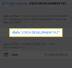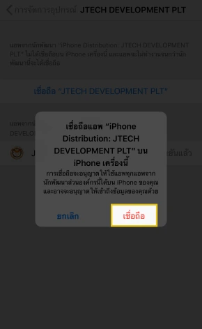 8. กดเลือก "เชื่อถือ JTECH DEVELOPMENT PLT"